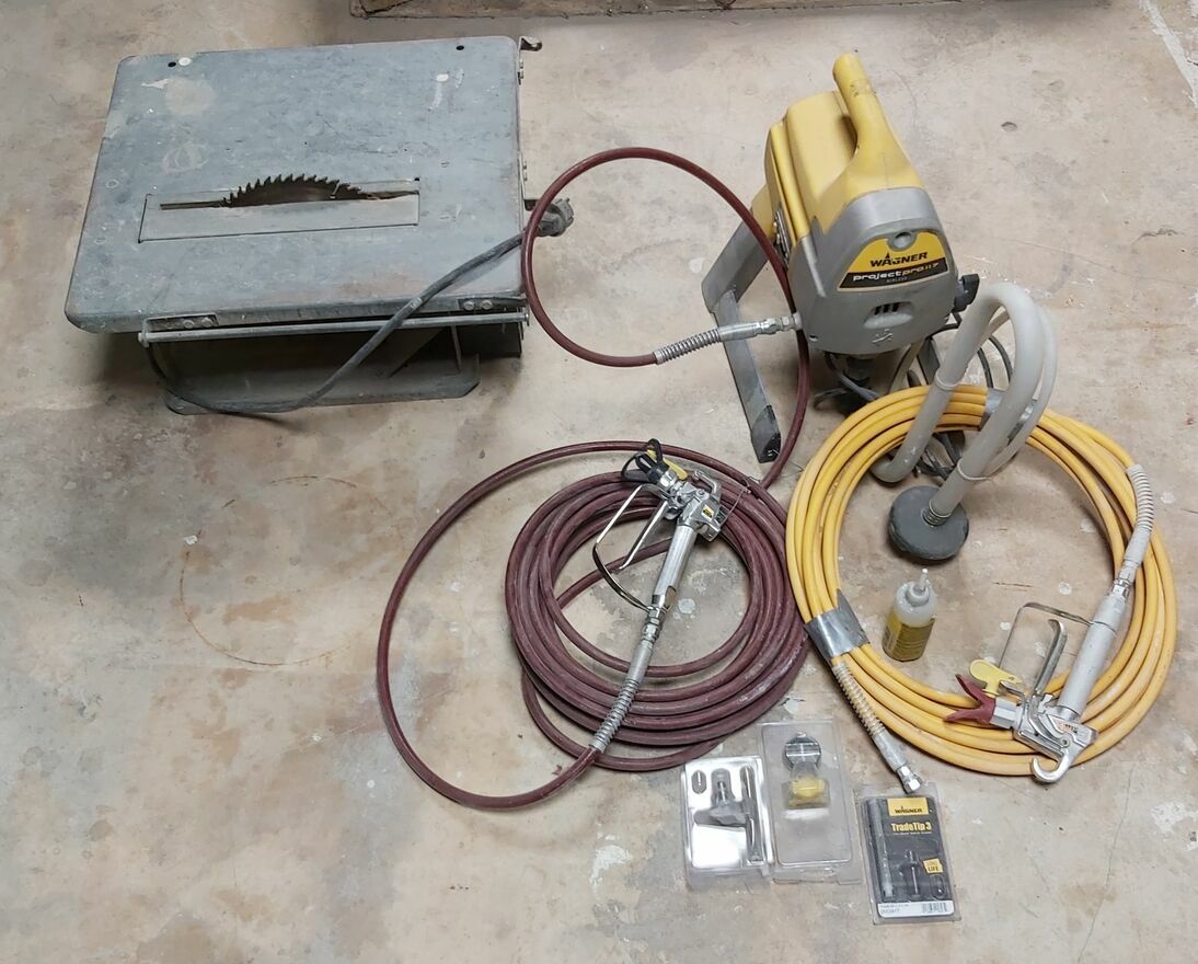Sprzedam używany Agregat malarski z wyposażeniem - węże pistolety profesjonalne.Sprzedam używaną pilarkę do drewna z piłą tnącą idealna do paneli, listew itp.