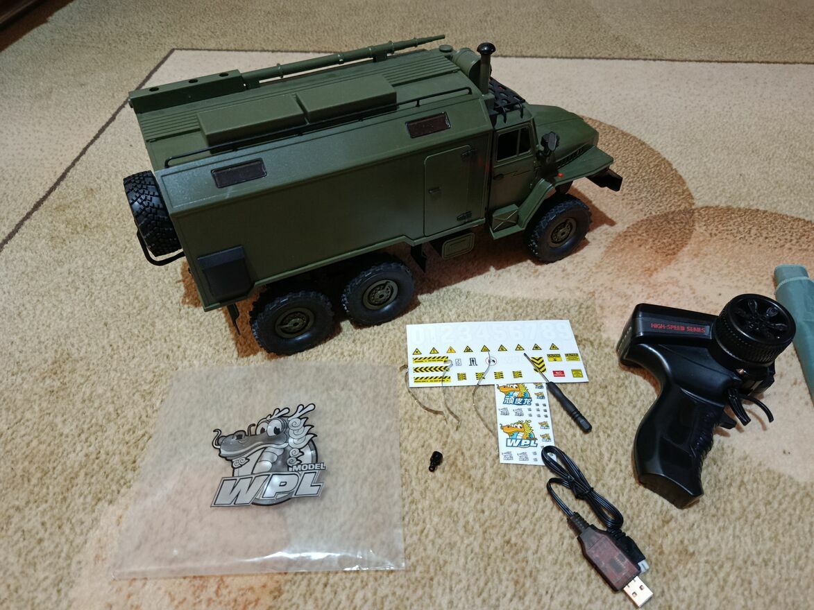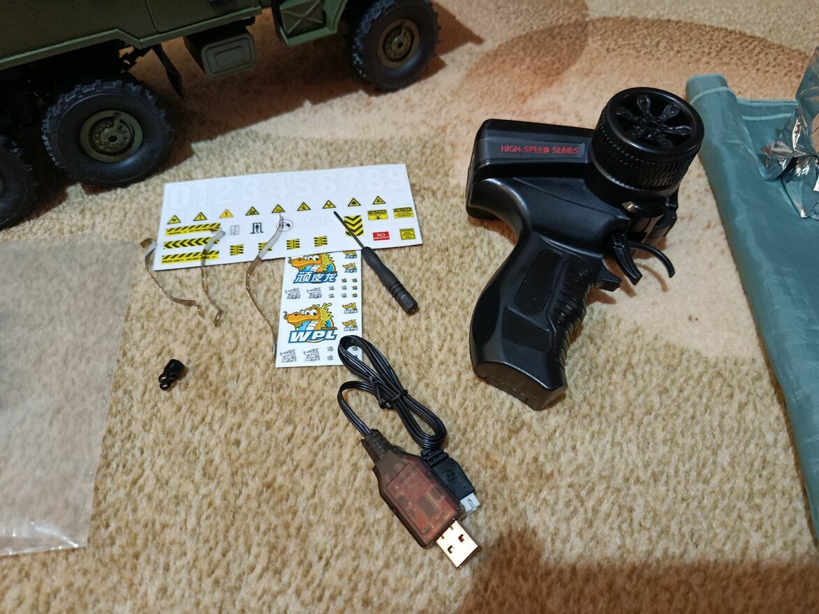 Model kompletny - naklejki, śrubokręt, kabel USB, akumulator, zapasowe resory.