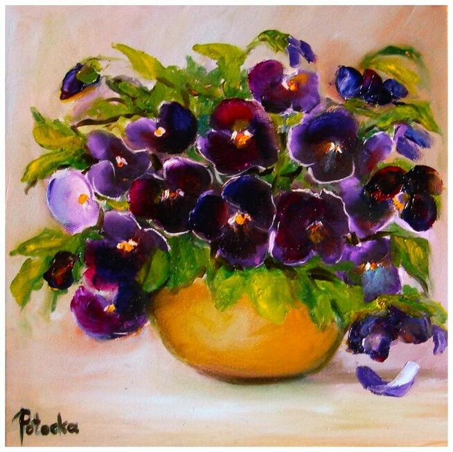 Obraz olejny Bratki rozmiar 25-25cm, sygnowany, werniksowany.