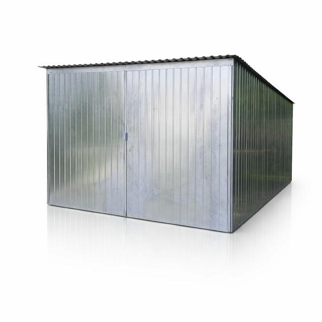 Garaż blaszany o wymiarach 3 × 5 m, II gatunku – budżetowy garaż przeznaczony na garaż samochodowy, schowek ...