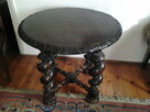 Rzeźbiony, drewniany stolik pomocniczy, kawowy, bogato toczonymi nogami i ozdobnym blatem. - DO ROZSĄDNEJ ...