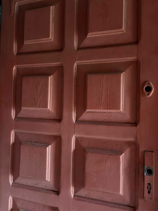 Solidne drewniane drzwi z demontażu. Prezentują się w bardzo dobrym stanie do lekkiego odświeżenia.Wymiary: wys. 206 cm x szer. 90 cm