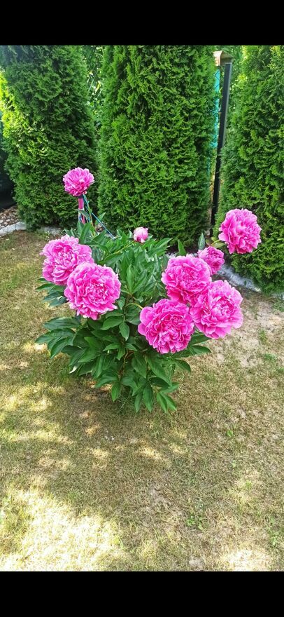 Działka rogowa obsadzona tujami, obok studnia i brama wjazdowa.