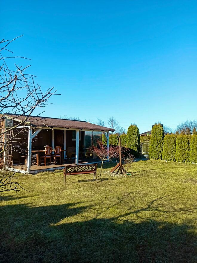 Sprzedam wyjątkową działkę rekreacyjną ROD 286m2 w Stróżewku naprzeciw Happy Parku.Na działce jest domek z tarasem, woda pitna, prąd, czereśnia, borówki, młody winogron, bez fioletowy, róże, piwonie i juki ogrodowe.