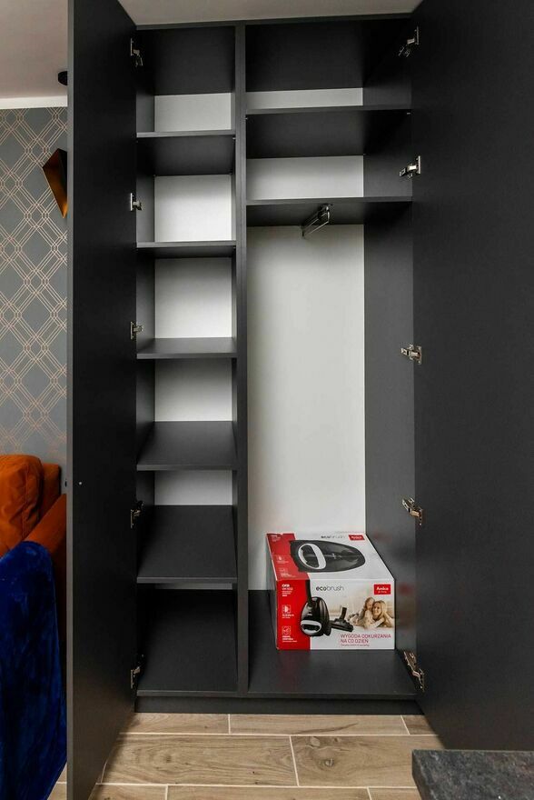 Mieszkanie zostało zaprojektowane z myślą o wykorzystaniu każdego centymetra przestrzeni, przy jednoczesnym utrzymaniu nowoczesnego i przyjemnego designu.