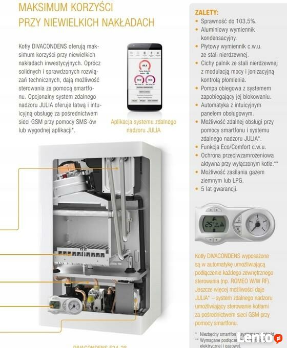 DIVACONDENS to 2-funkcyjne gazowe kotły kondensacyjne, w których zastosowano sprawdzone rozwiązania stosowane w nowoczesnej technice kondensacyjnej. DIVACONDENS wyróżniają się wysoką jakością, niewielkimi wymiarami i doskonałym stosunkiem ceny do możliwości. To jedne z najtańszych gazowych kotłów kondensacyjnych na rynku!ZALETY:
