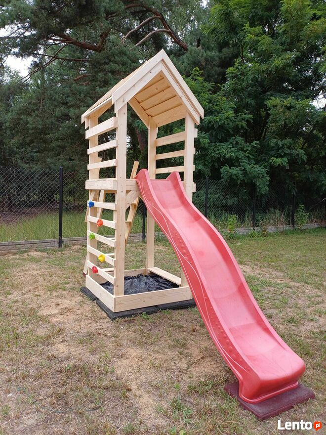 Plac zabaw w danym ogłoszeniu nie zawiera widocznego na zdjęciach ślizgu/zjeżdżalni, kamieni do wspinaczki. Należy je zakupić osobno.