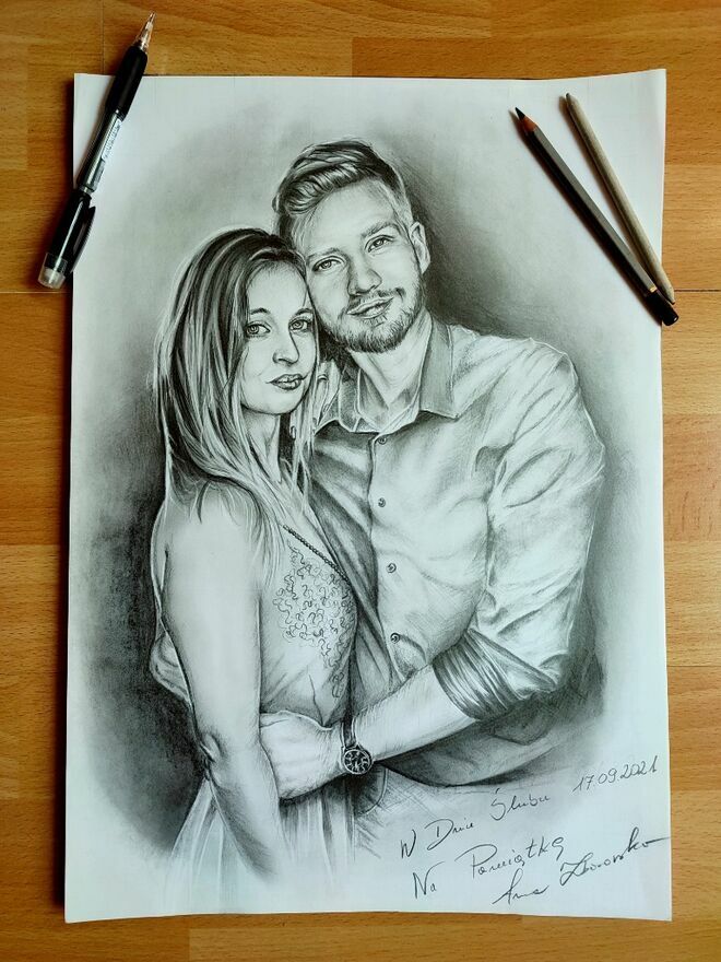 Aby zamówić u mnie taki portret wystarczy wysłać mi dobrej jakości zdjęcie (im wyraźniejsze zdjęcie tym lepszy portret). Przed wysyłką pracy, pokazuję zdjęcie rysunku do akceptacji.
