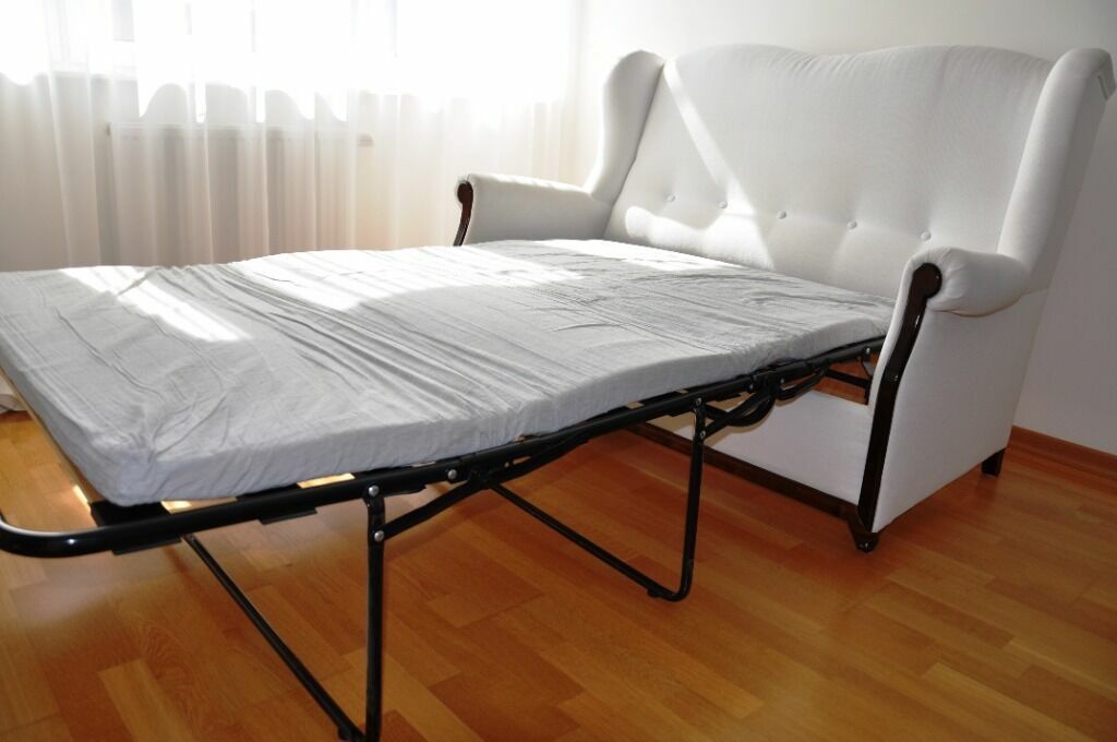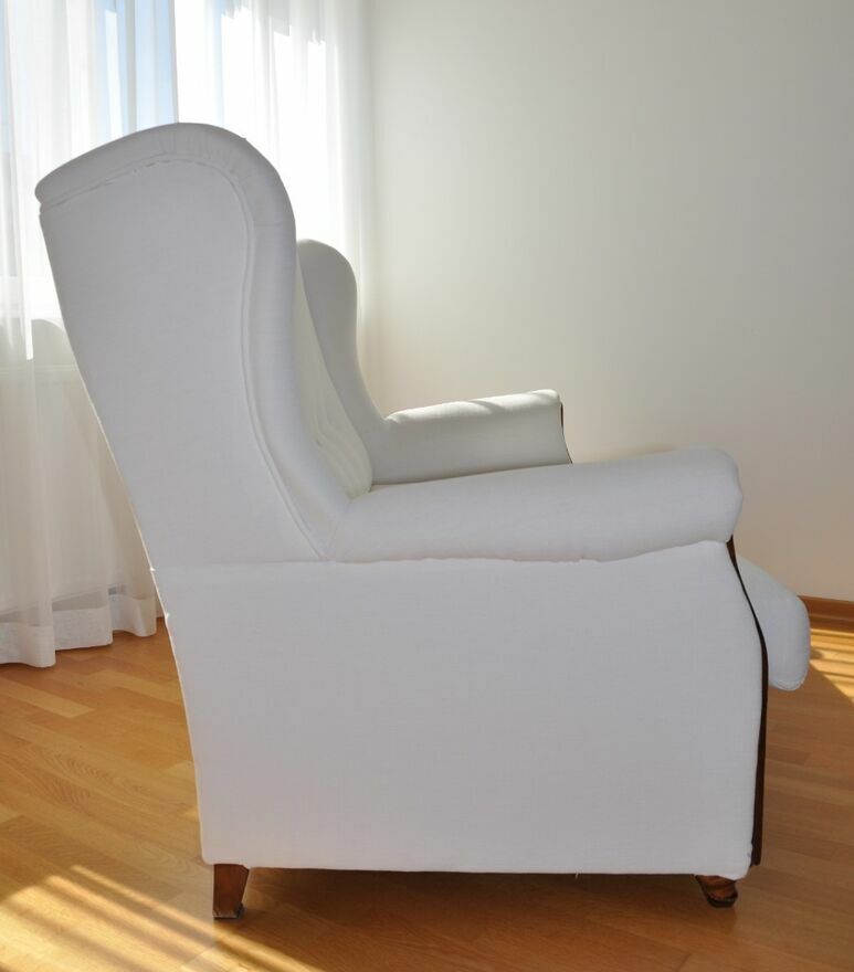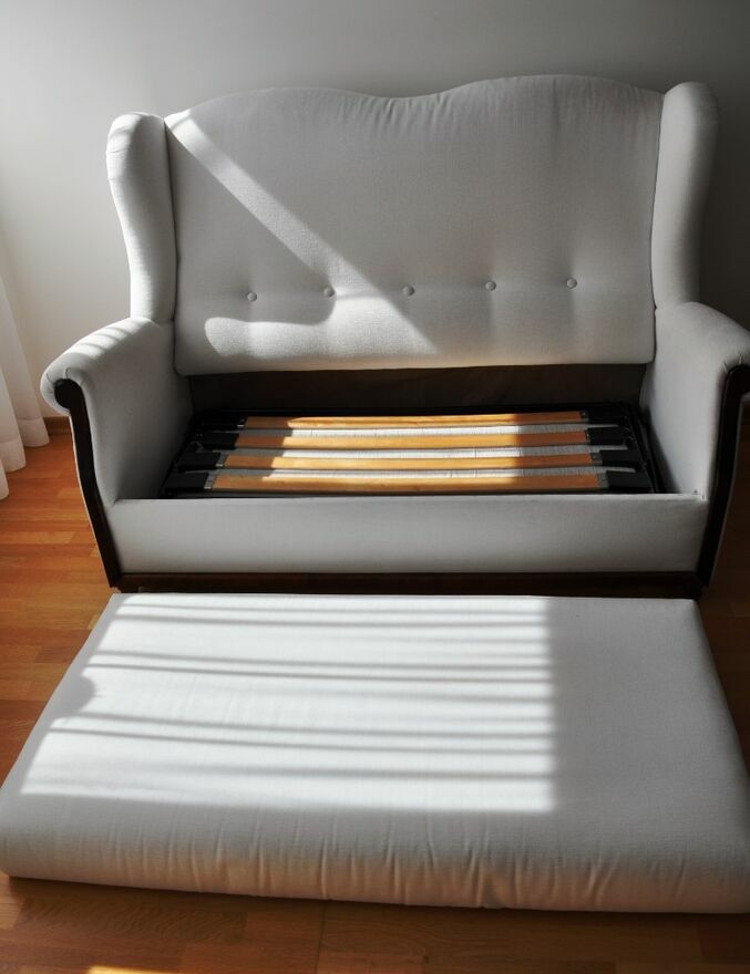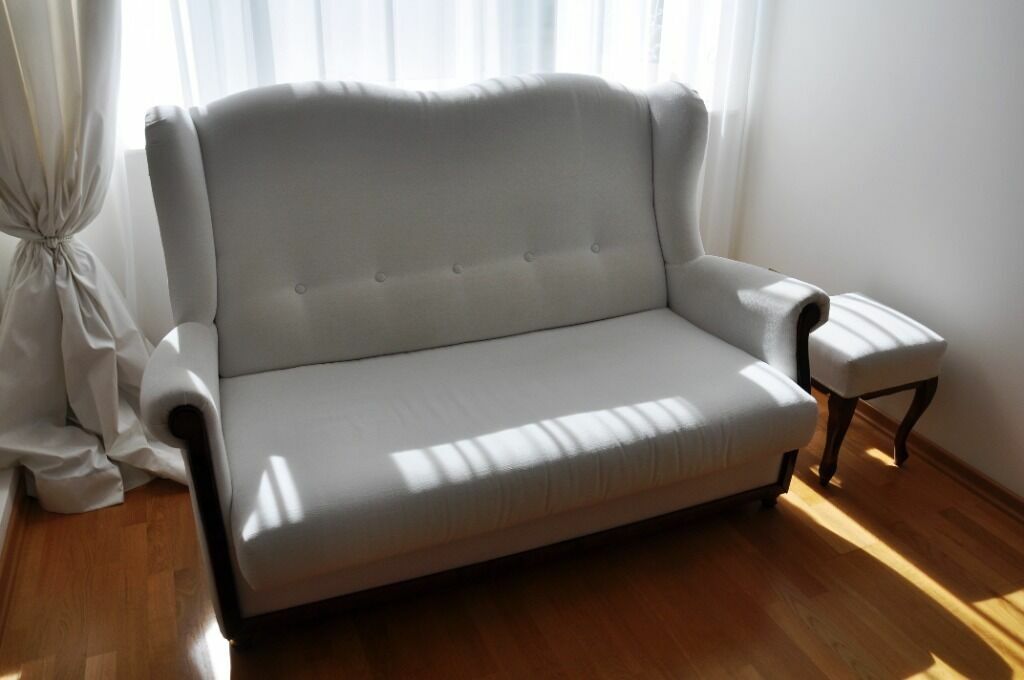 Tkanina mebli została wymieniona. Meble używane, w bardzo dobrym stanie. Wymagają jedynie odświeżenia.