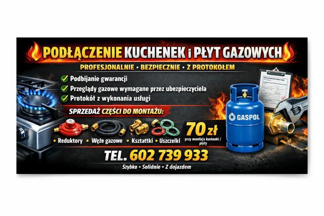 5Zapewniamy kompleksowe usługi gazowe, podłączenia kuchenek gazowych, montaż płyt gazowych, naprawy instalacji gazowych, ...